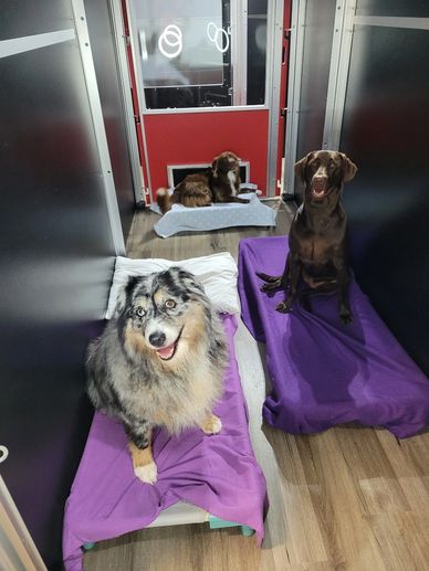 Bring your own bedding or choose from our luxury toddler sized beds and furniture or our cozy orthopedic Kuranda cots (please let us know if your dog is a chewer or a bedwetter).