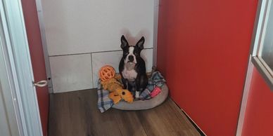 Semi-Private with radio and TV for dogs with crowd anxiety